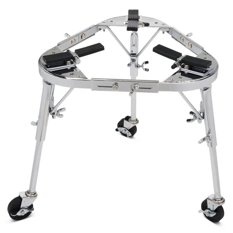 El soporte plegable LP es el soporte para congas más versátil de LP y la elección de muchos músicos profesionales. El soporte está fabricado con acero de gran espesor y tiene pinzas de goma accionadas por resorte para la carcasa. Esta versión recientemente mejorada permite ajustar el soporte para adaptarse a los modelos Requinto y Super Tumba. Tiene patas tubulares con ruedas con freno y se puede ajustar hasta una altura de 3″. *