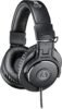 Los audífonos de monitorización ATH-M30x negros de Audio Technica están diseñados para su uso en aplicaciones de seguimiento en el estudio, mezcla o grabación de campo e incorporan controladores de neodimio de 40 mm con bobinas de voz de aluminio revestidas de cobre, ajustadas para una definición detallada de rango medio. Los audífonos tienen un diseño circumaural, alrededor del oído, que proporciona aislamiento de sonido en ambientes ruidosos. Los ATH-M30x tienen un diseño plegable que también permite el monitoreo de un solo oído. Se incluyen un adaptador de rosca de 1/4″ y una bolsa de transporte.