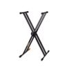 El soporte para teclado HERCULES Double X KS120B presenta el EZ-LOK patentado, 5 configuraciones de altura y una construcción de acero resistente.