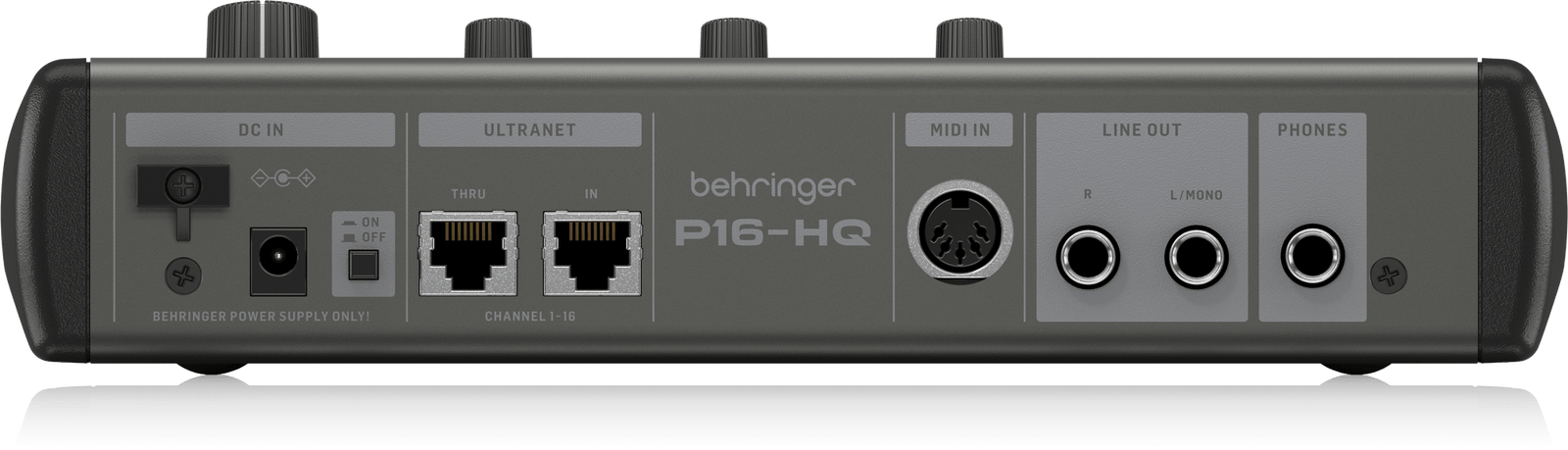El BEHRINGER P16-HQ te permite crear tu propia mezcla de monitoreo personal de 16 canales, con conversiones D/A de 114 dB, ecualizador de 3 bandas, limitador integrado, y controles dedicados por canal para un sonido profesional en escenario o estudio. Ideal para IEMs, con conexiรณn Ultranet, MIDI y presets de usuario.