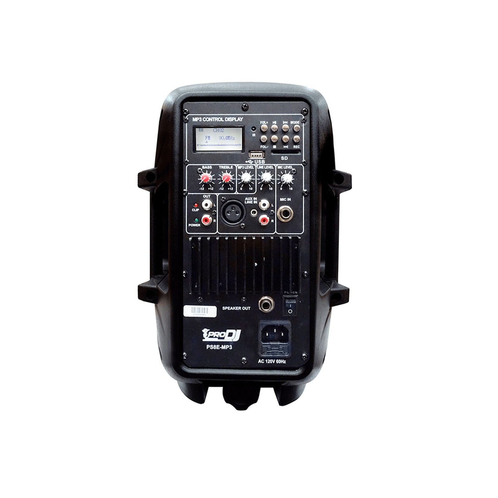 • 1 Entrada de micrófono TRS 1 Entrada de línea XLR, RCA o AUX (3.5mm) y módulo USB/SD/Bluetooth/Radio FM.