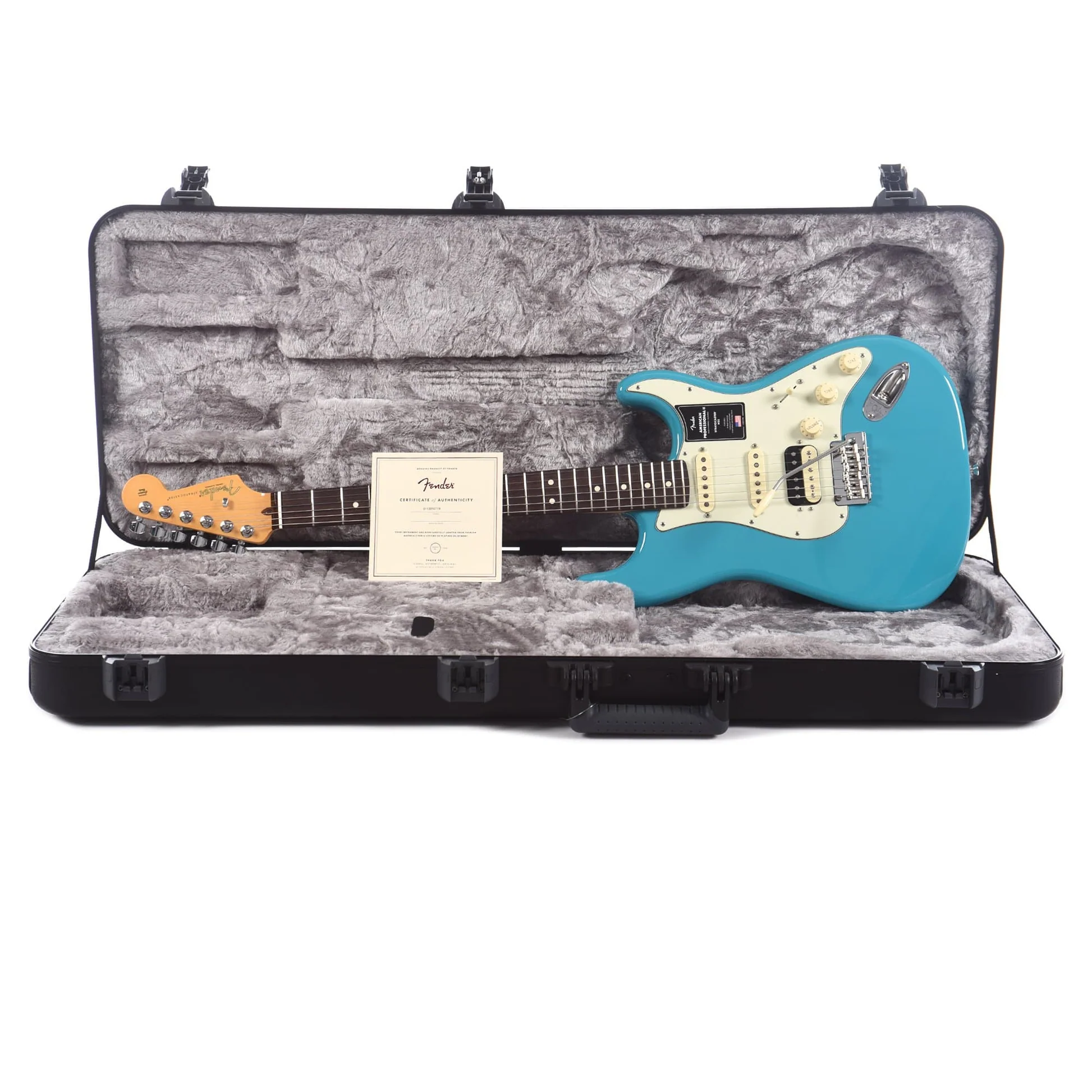 La Fender American Professional II Stratocaster es una evolución moderna de una de las guitarras más icónicas del mundo. Fabricada en EE.UU., esta guitarra combina el clásico tono Strat con mejoras modernas en comodidad, versatilidad y estética. Su acabado en azul mystic con golpeador rosa le da un look exclusivo y llamativo, ideal para músicos que quieren destacar tanto en sonido como en presencia. Perfecta para escenarios, estudio y coleccionistas exigentes.