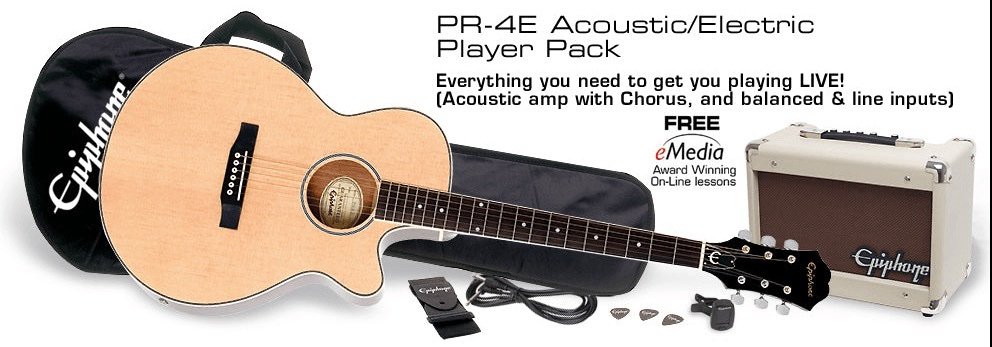 Epiphone PR-4E La guitarra acústica-eléctrica Epiphone PR-4E ha sido un éxito de ventas desde su primer lanzamiento hace más de una década, dando a los principiantes la oportunidad de aprender sobre una guitarra que tiene un sonido profesional y una construcción de calidad en un Buen precio. En Epiphone, tomamos en serio a todos los músicos, ya sea que haya tocado toda su vida o simplemente haya tomado una guitarra por primera vez, y el PR-4E continúa la larga tradición de Epiphone de construir cada instrumento para que dure toda la vida.