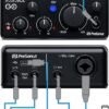 Interfaz de audio de 2 canales de entrada y 2 de salida, con conector 1 conector combo XLR/TRS y una entrada de linea TRS con control de ganancia independiente, 1 salida de audifonos con control de volumen, boton de Phantom Power, control de volumen general para las salidads TRS y conectividad USB-C
