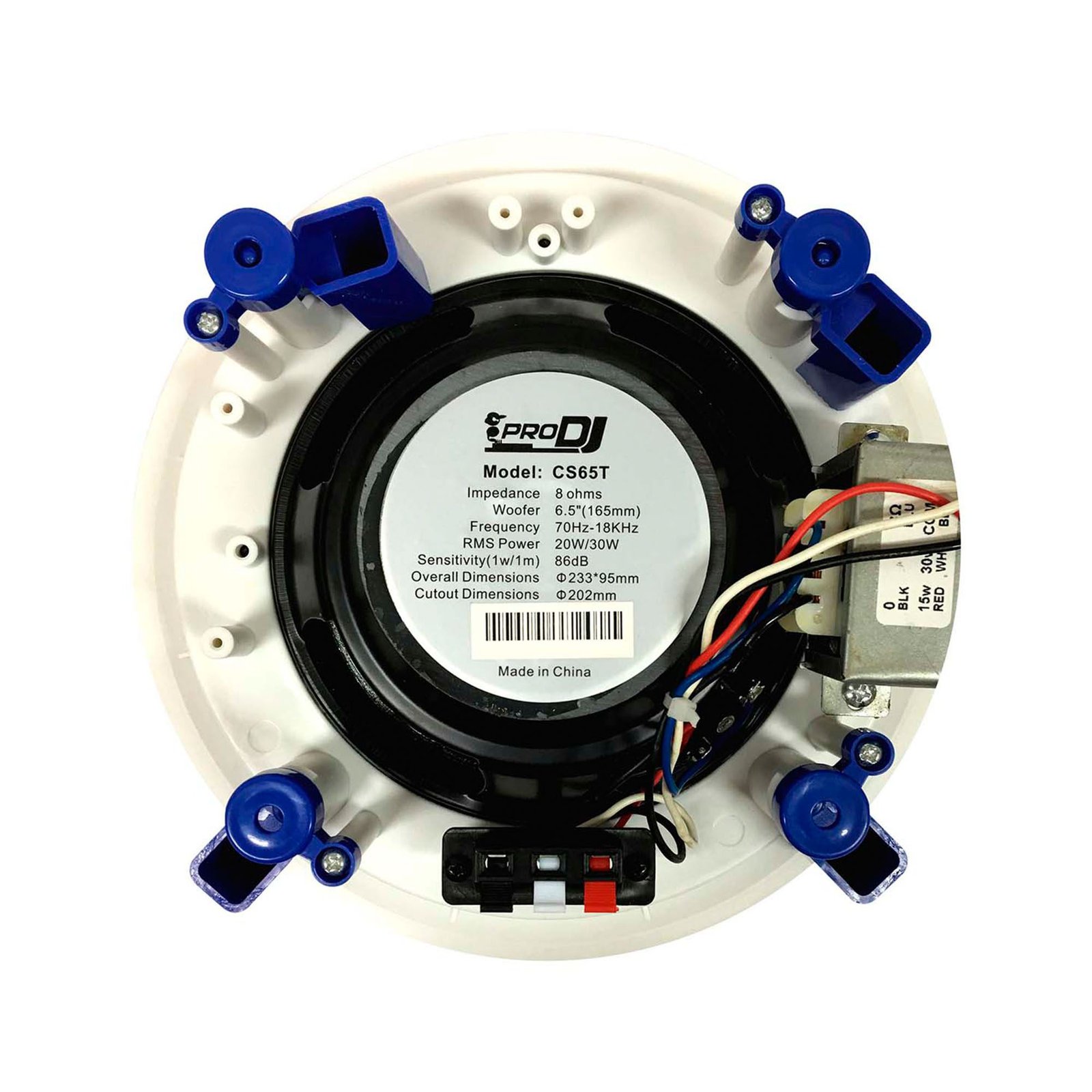 Cuando complementas los parlantes ambientales para techo PRODJ CS65T con el amplificador más óptimo, tendrás a disposición un speaker coaxial a dos vías con un woofer de 6.5” y un tweeter de 1”. Además, cuenta con una estética sobria y discreta, ideal para una instalación limpia en techos y cielos rasos fabricados en materiales como drywall, aglomerados y superficies sintéticas.