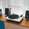 Este tornamesa fácil de usar reproduce discos de 33-1/3 y 45 RPM y, además de su tecnología inalámbrica Bluetooth, cuenta con un preamplificador de fono conmutable integrado que permite conectar el tornamesa a un equipo estéreo doméstico, altavoces con alimentación u otro componente, con o sin una entrada de fono dedicada.