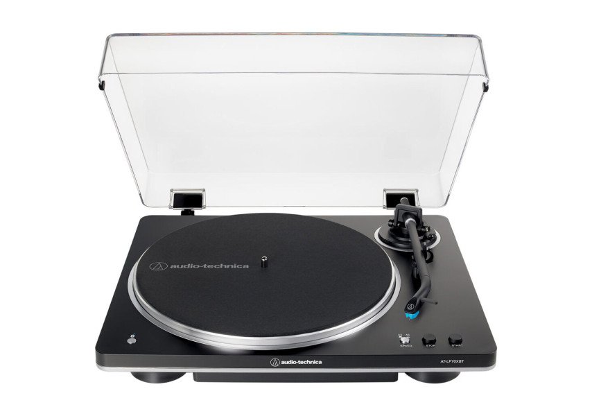 El tornamesa inalámbrico automático AT-LP70XBT en color negro y plateado de Audio-Technica es el tornamesa perfecto para principiantes que comienzan su viaje audiófilo. Combinando la experiencia de un audio cálido y analógico con la comodidad de la tecnología Bluetooth®, puedes escuchar tus vinilos a través de altavoces, auriculares u otros dispositivos con Bluetooth, incluidos los compatibles con el códec de audio Qualcomm® aptX™ Adaptive de alta calidad.