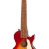 Ukelele acústico / eléctrico tenor Les Paul® con pastilla debajo del sillín El ukelele eléctrico / acústico tenor Les Paul® (afinado GCEA) lleva el estilo de cuerpo clásico de Les Paul a los músicos de Uke de todo el mundo. ¡Con una tapa de abeto selecta más una pastilla piezo debajo del sillín para que puedas tocar en cualquier lugar! Bolsa de transporte incluida. Ukelele tenor con estilo Les Paul : Les Paul® Tenor Acoustic / Electric de Epiphone tiene la clásica forma de cuerpo ‘Les Paul’ con una tapa de abeto selecto y un cuerpo de caoba selecto. El mástil de caoba maciza tiene un perfil en C SlimTaper ™ más la firma Les Paul en oro en el cabezal inclinado Dovewing al estilo de las Les Paul de tamaño completo. El mástil tiene un diapasón de Granadillo y una escala de 17 ”de largo, un radio de 12 diapasón y 19 trastes medianos. El puente también está hecho de Granadillo. La Les Paul Tenor está disponible en acabados de color Heritage Cherry Sunburst (HS) y Vintage Sunburst (VS). ¡Conéctelo en cualquier lugar! : El ukelele tenor Les Paul® se puede conectar a cualquier PA o amplificador gracias a la pastilla Piezo Film debajo del sillín. La toma de salida de ¼ ”está montada en el borde. Hardware sólido de Epiphone : Afinando el ukelele tenor Les Paul® Premium es fácil gracias a los cabezales de máquina Open-Back con una relación de giro de 14: 1 para un ajuste rápido y preciso plus y una funda. Garantía limitada de por vida El ukelele acústico / eléctrico tenor Les Paul® está cubierto por la garantía limitada de por vida de Epiphone y el mundialmente famoso servicio de atención al cliente 24/7/365 de Gibson. Visite a su distribuidor autorizado de Epiphone más cercano y atrape la fiebre del ukelele con el ukelele acústico / eléctrico tenor Les Paul® Epiphone Ukulele tenor Ac / El ukelele Les Paul® de un vistazo – Ukulele acústico / eléctrico Les Paul® tenor con estilo de cuerpo Les Paul Pastilla piezoeléctrica debajo del sillín – Perfecta para viajes – Incluye funda