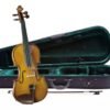 Handcarved Tapa de abeto maciza tallada a mano de arce sólido atrás y purfling laterales sólidos de arce con incrustaciones de cuello Dyed palisandro, mentonera y equipamiento chinrest estilo Kaufman Mejorado A.Breton VP-61 cordal de la aleación con 4 armarios finetuners Cremona VP-202 puente Translucent Warm Brown calidad de acabado A.Breton AB-110 del arco de madera rana withRosewood y sin blanquear de forma ligero crin blanca, caso de suspensión de arco-tapa con negro exterior y verde interior